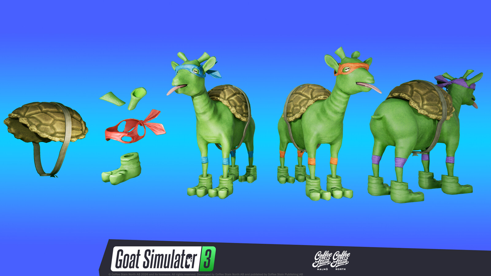 At Coffee Stain Malmö, I collaborated with Coffee Stain North and Piktiv on the “Turdle Goat” gear set for the Goat Simulator 3 update Operation Crackdown. The concept was created by Daniel Ribera Olsen.